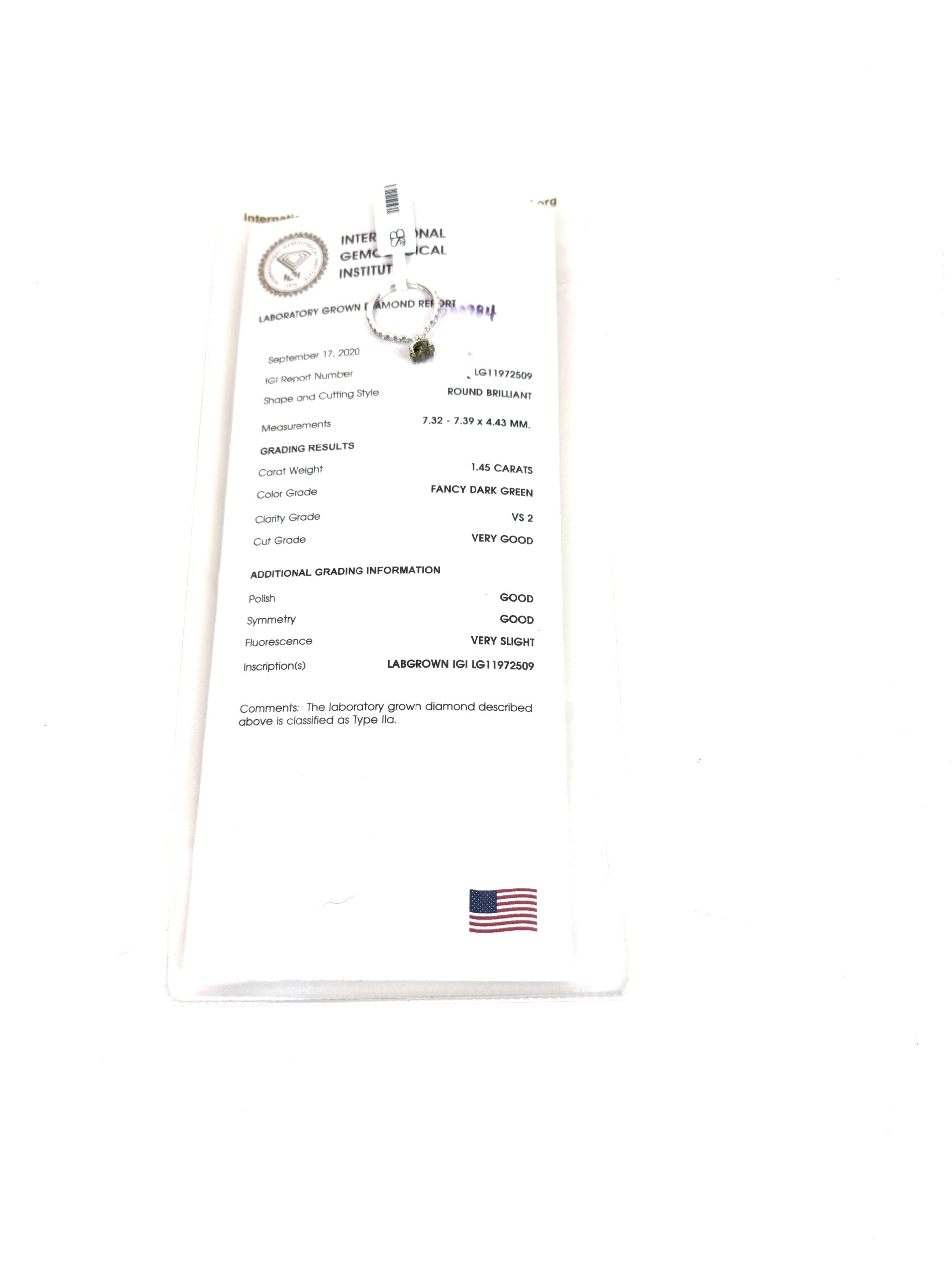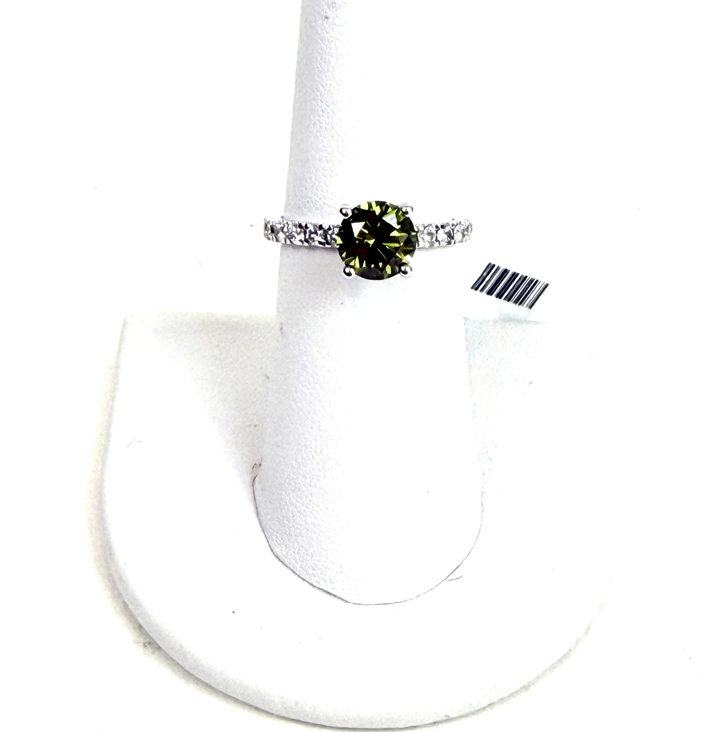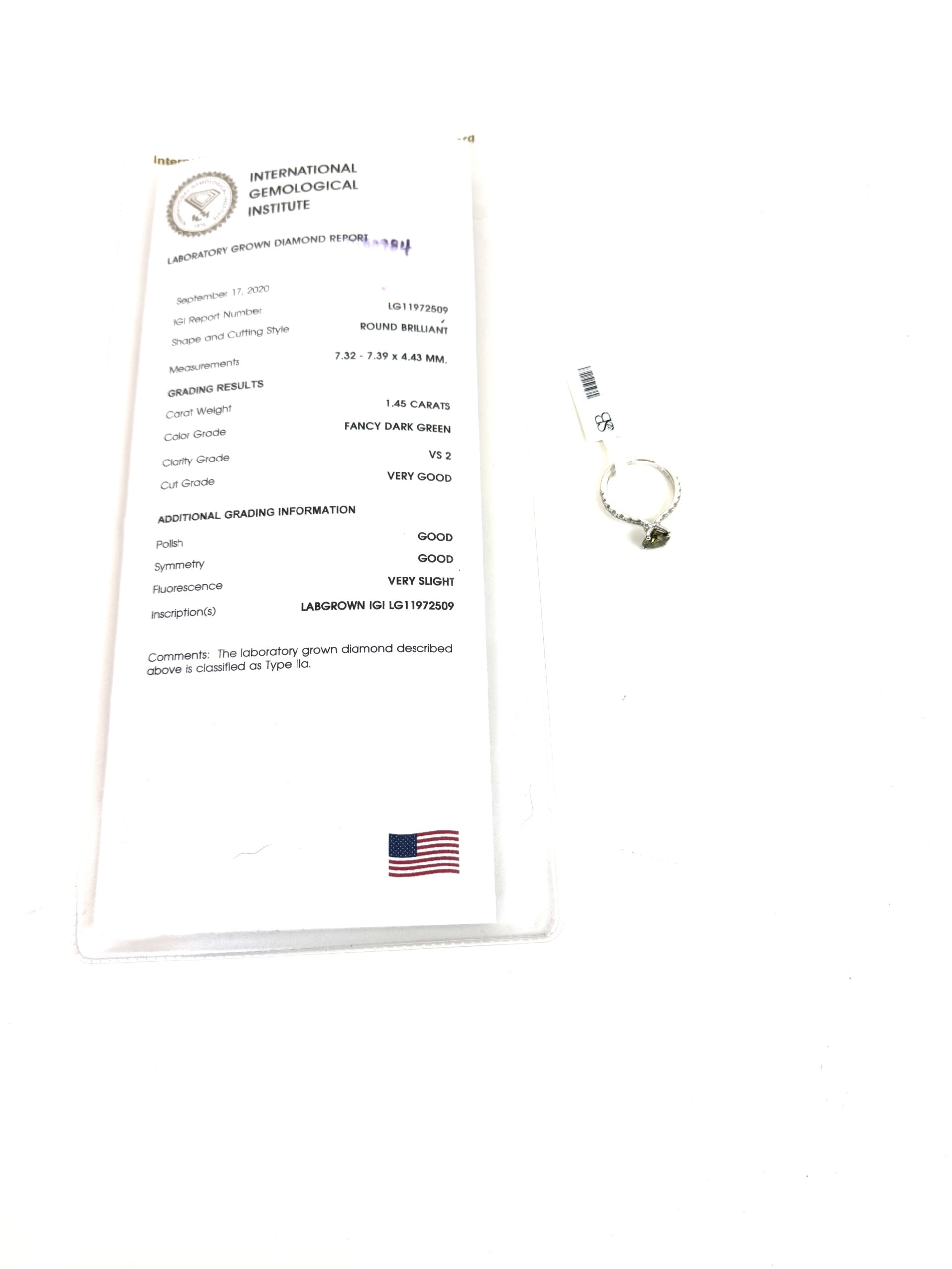 2 TCW Vivid Green Round Lab Diamond in White 14K Gold Engagement Ring
