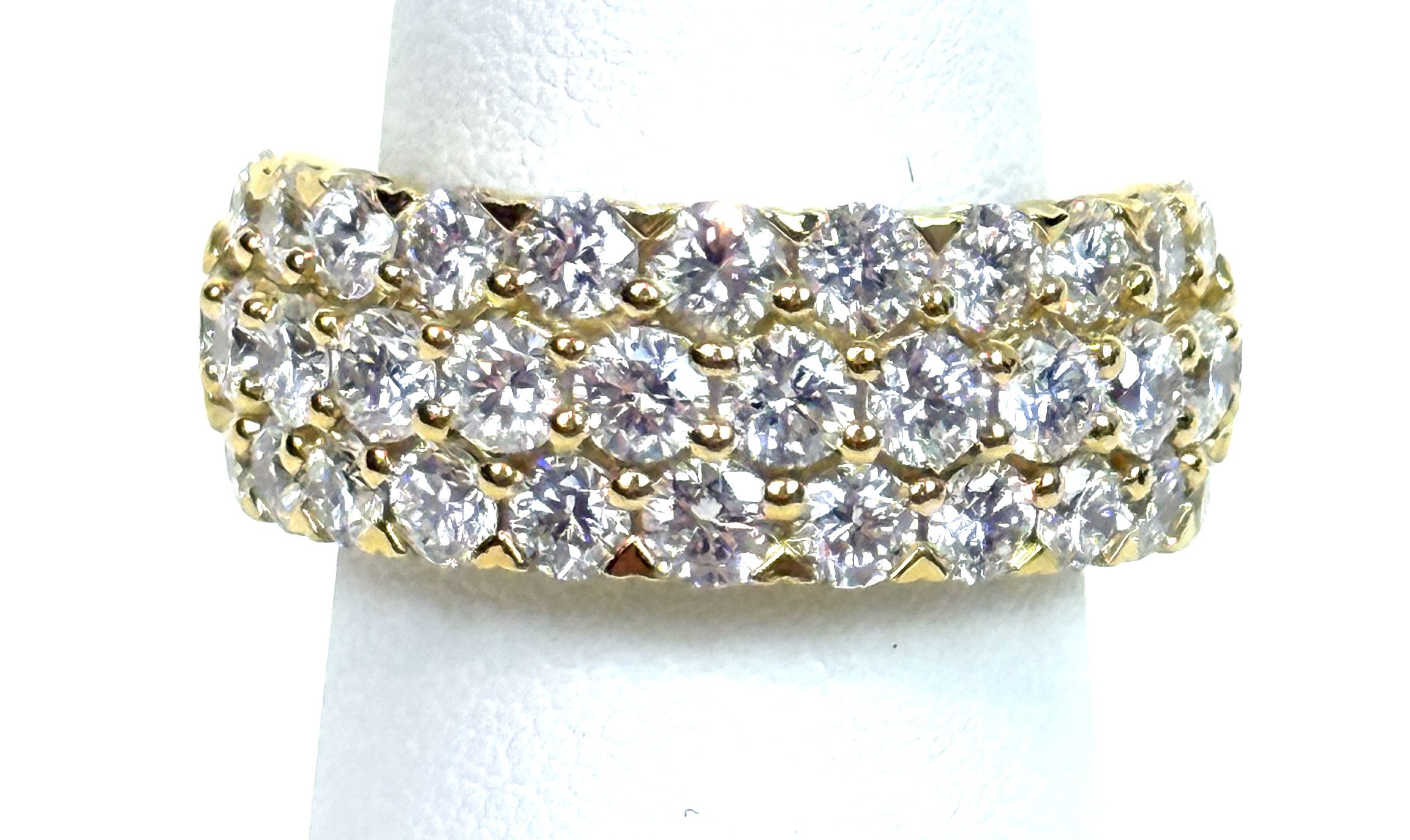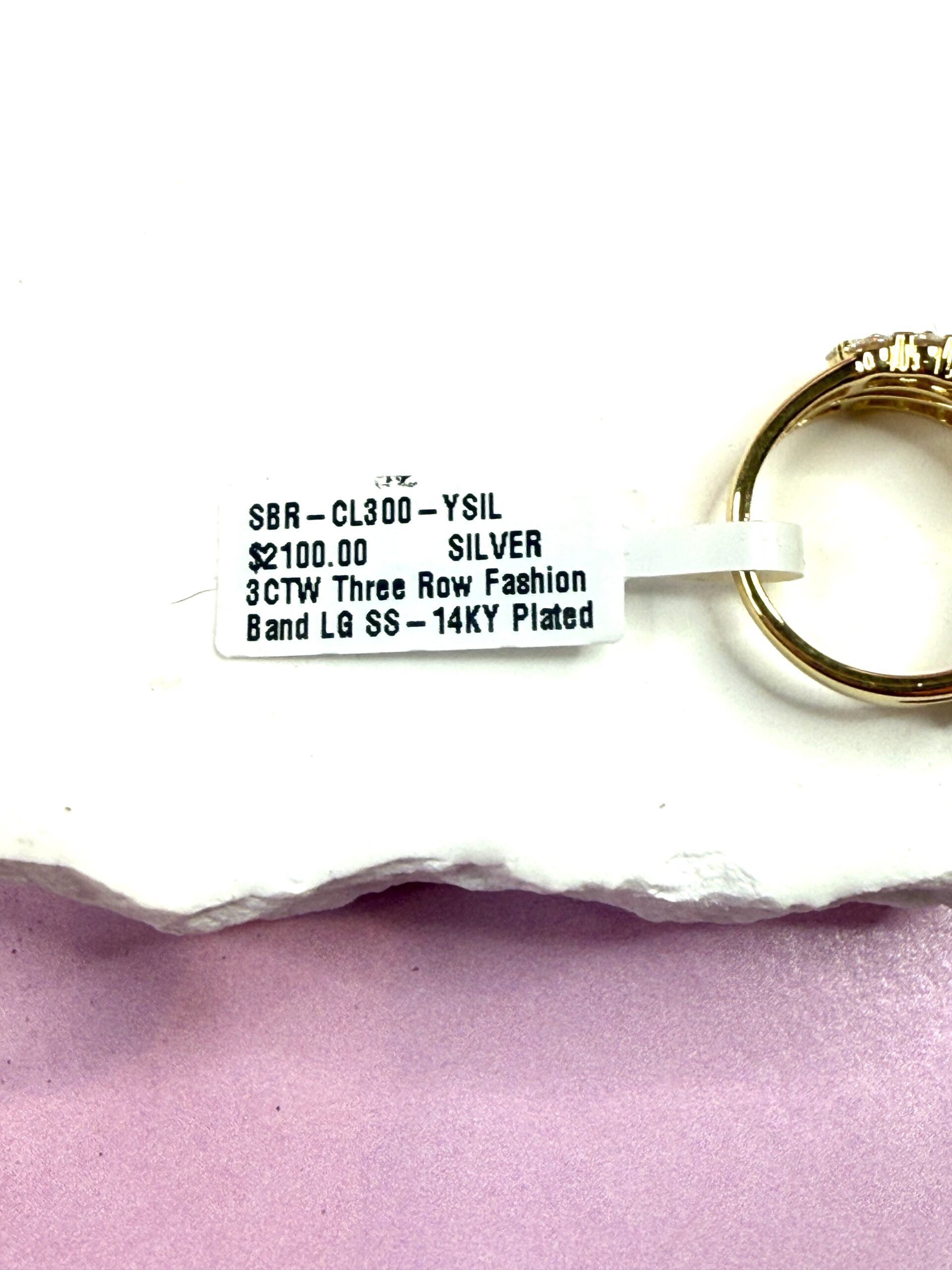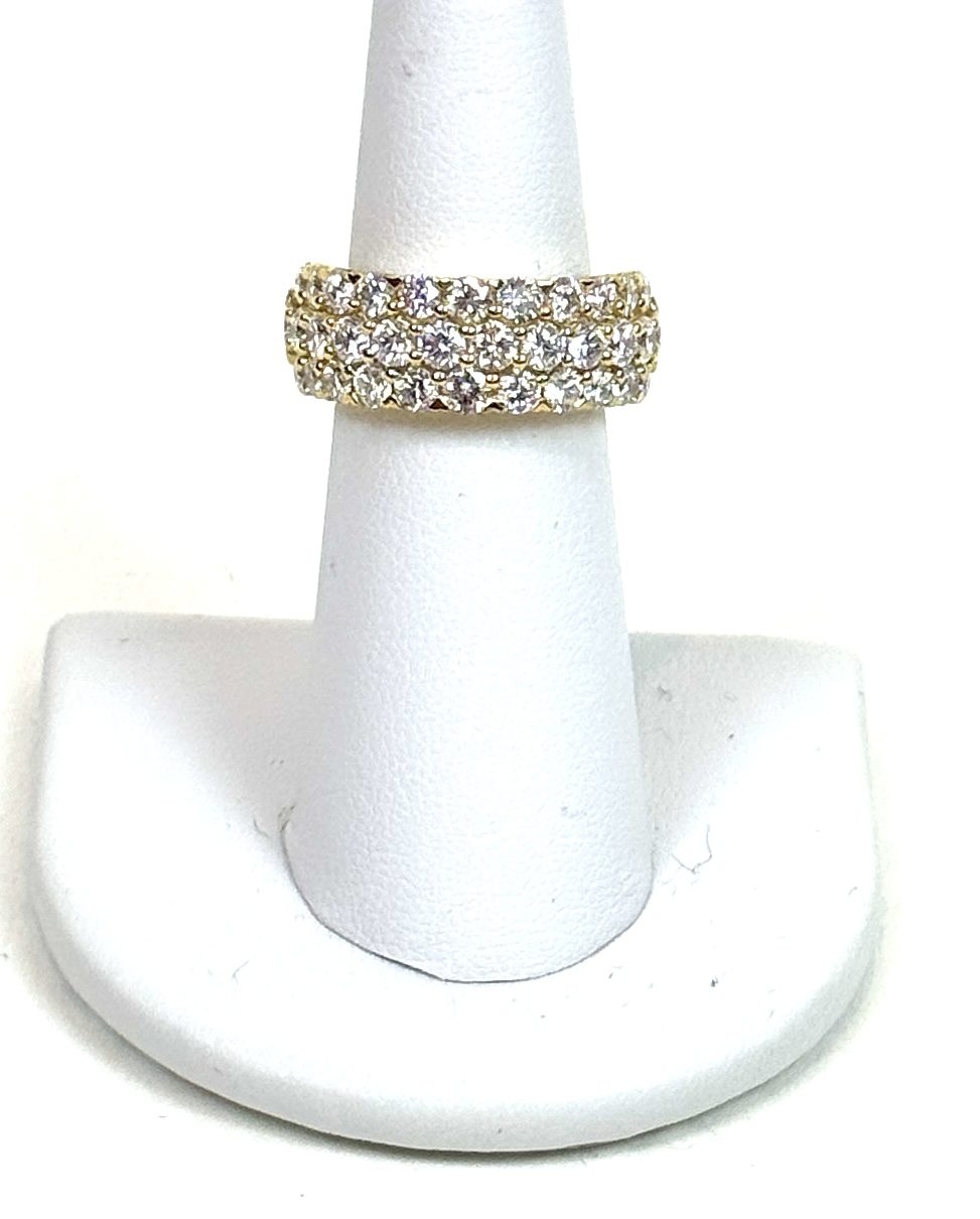3 TCW Yellow .925 Silver 3 Row Lab Diamond Ring