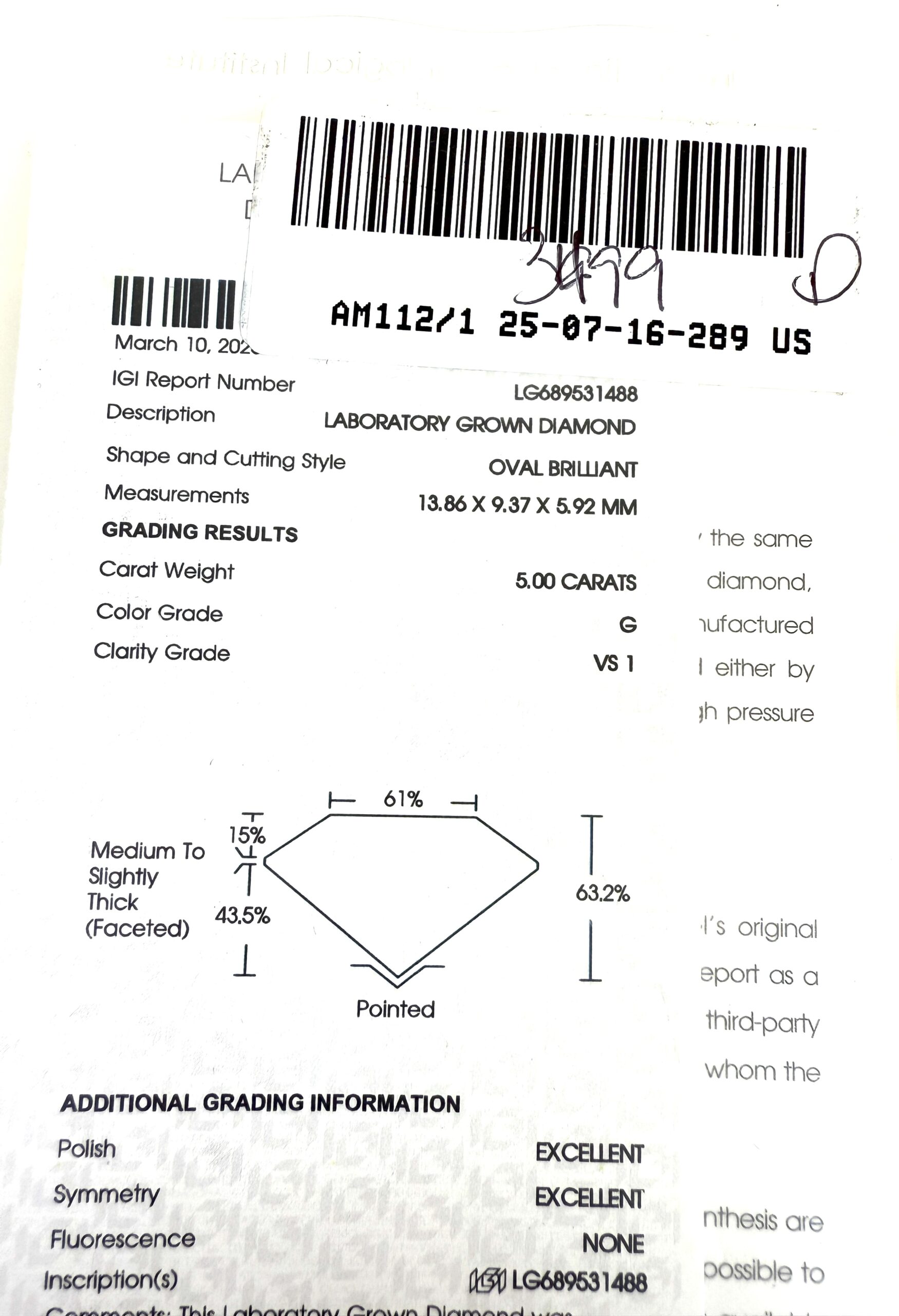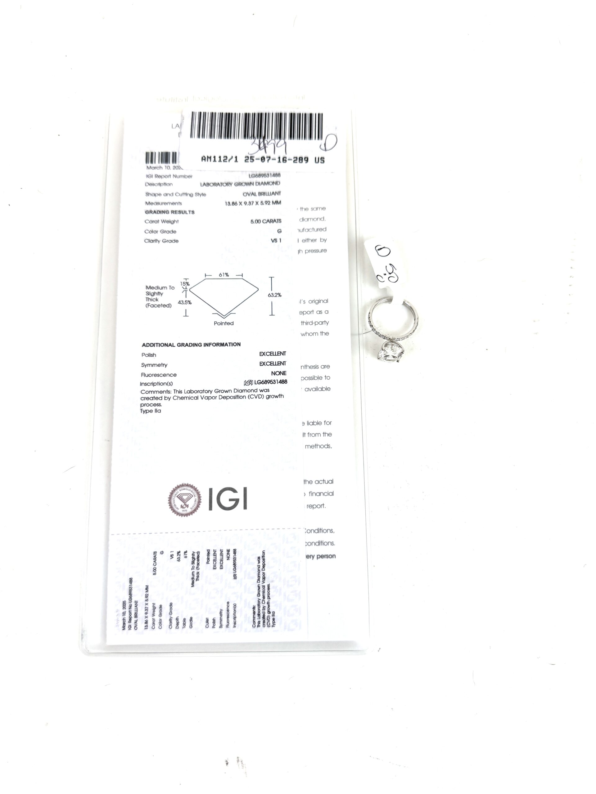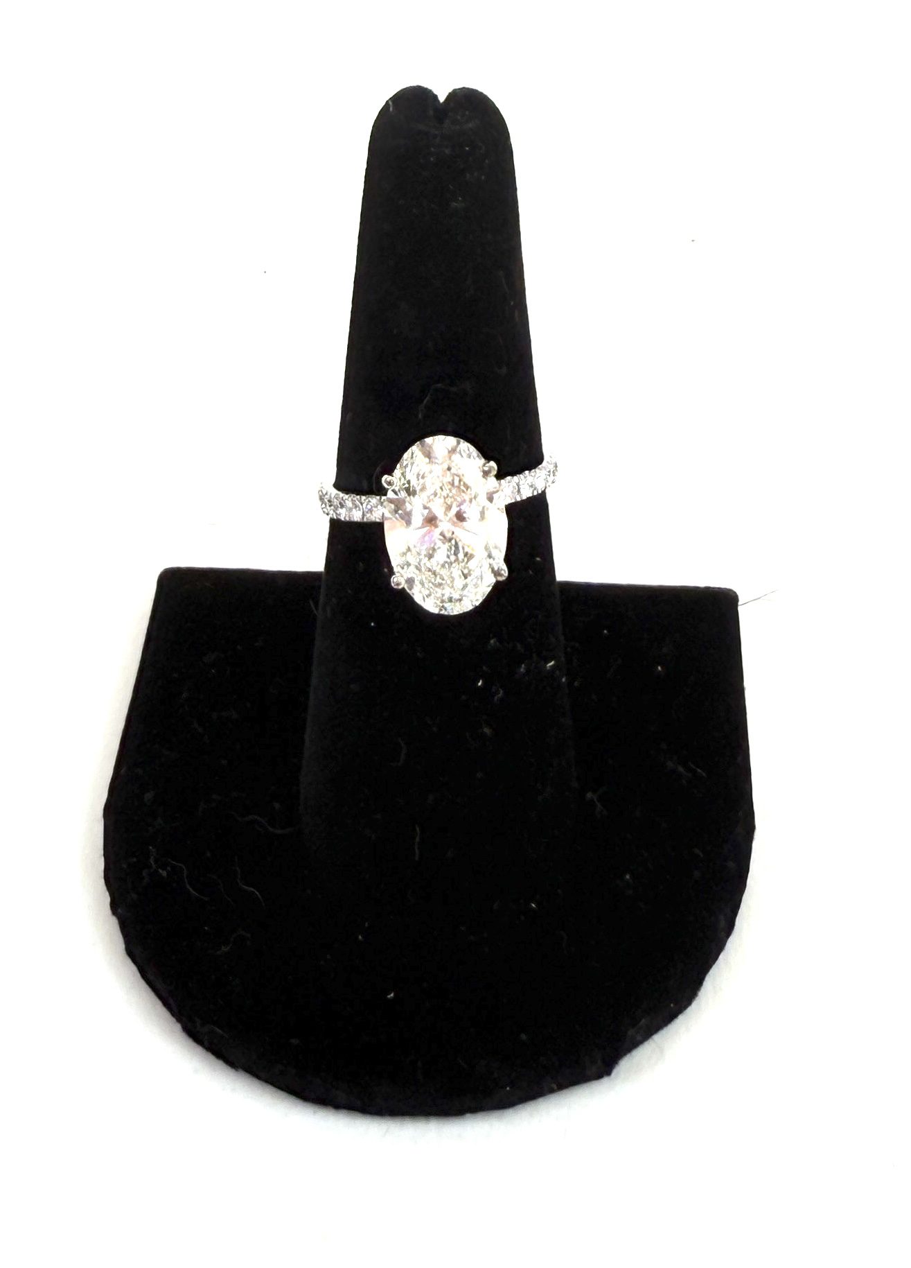 5.5 Carat Lab Grown Oval Brilliant Diamond Engagement Ring 14K White Gold – D