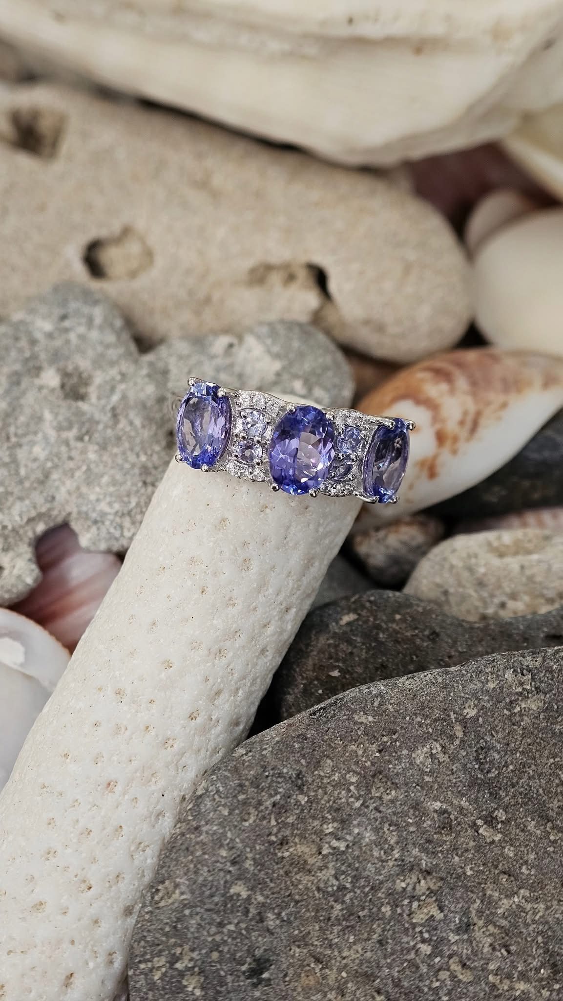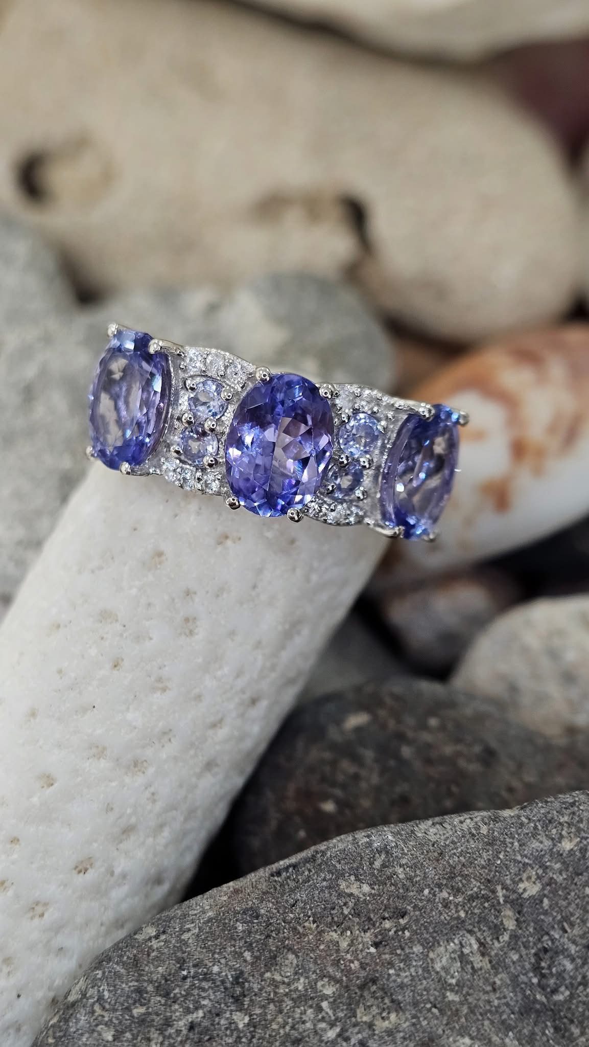 .925 Sterling Silver and Genuine Tanzanite and White Zircon Ring