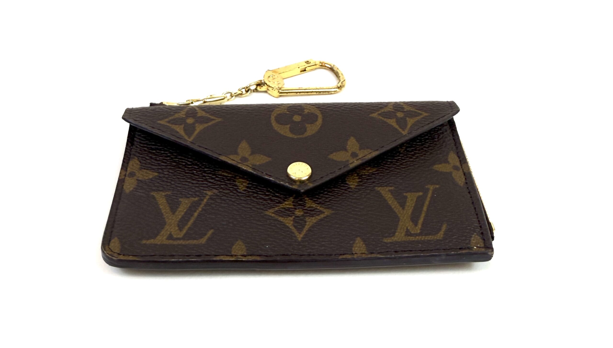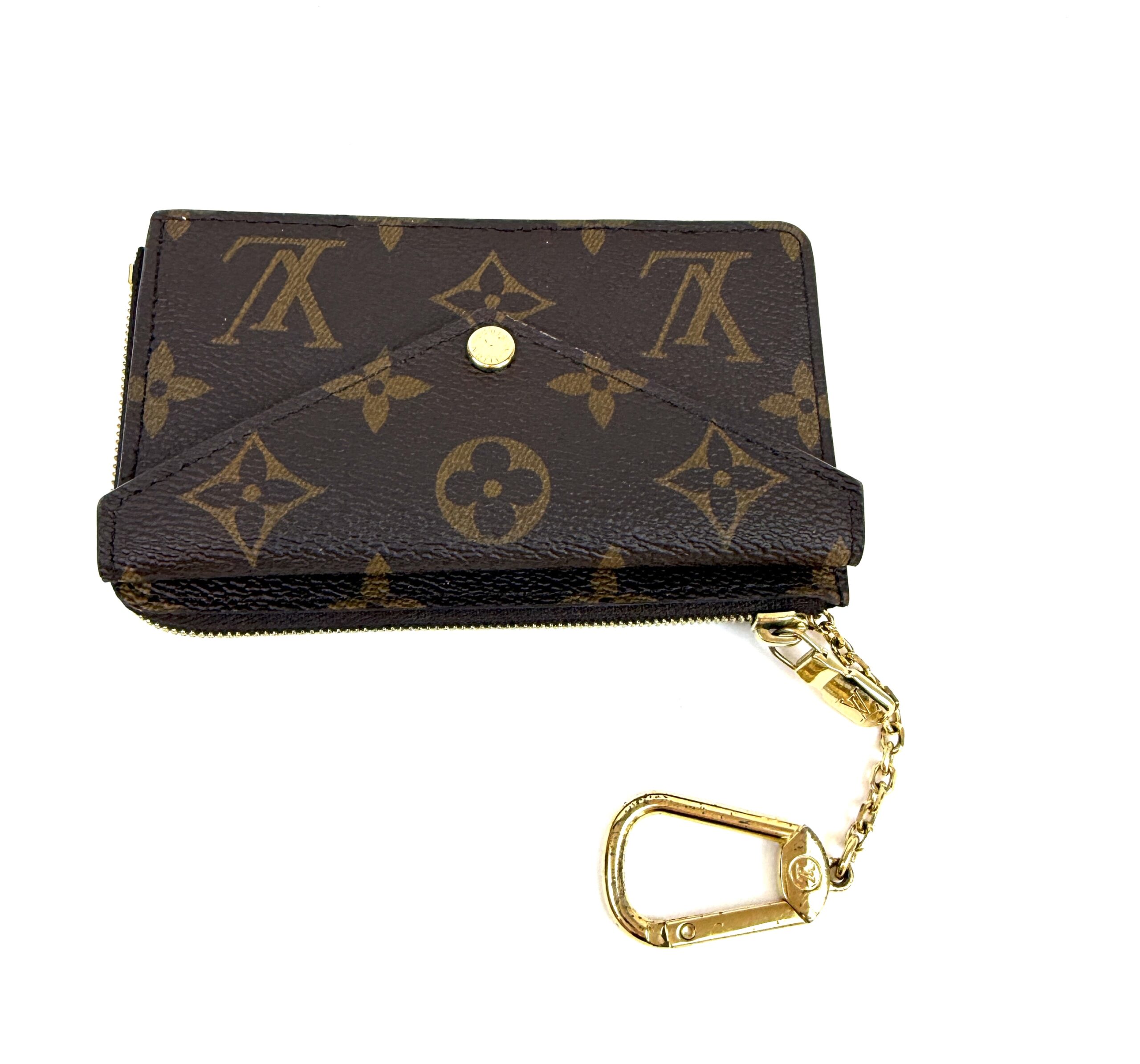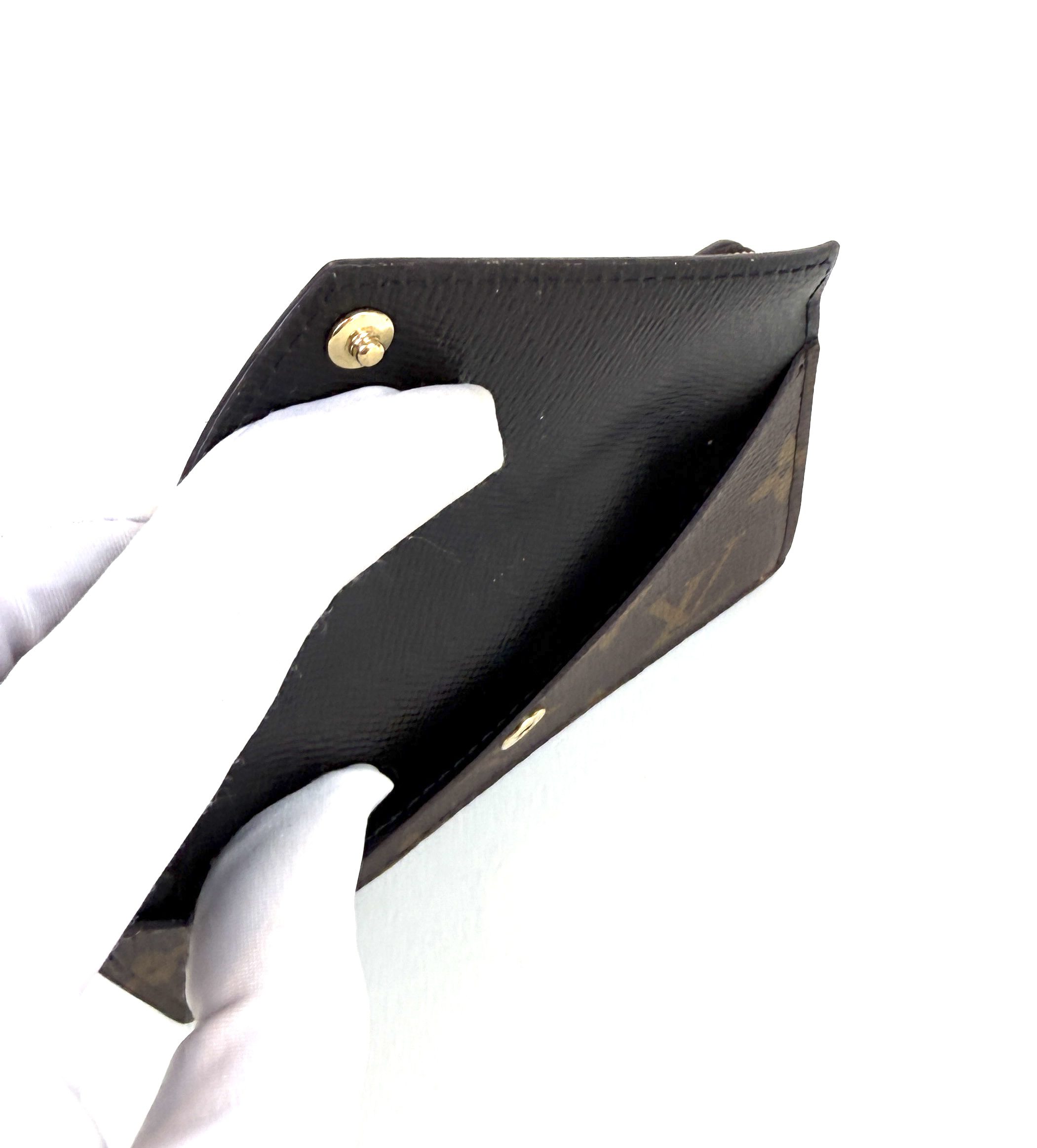 This very chic cardholder is finely crafted of Louis Vuitton monogram. The case features a front envelope pocket, card slots on the back, and a zipper currency compartment with a key ring clasp. Retail plus tax is $747!