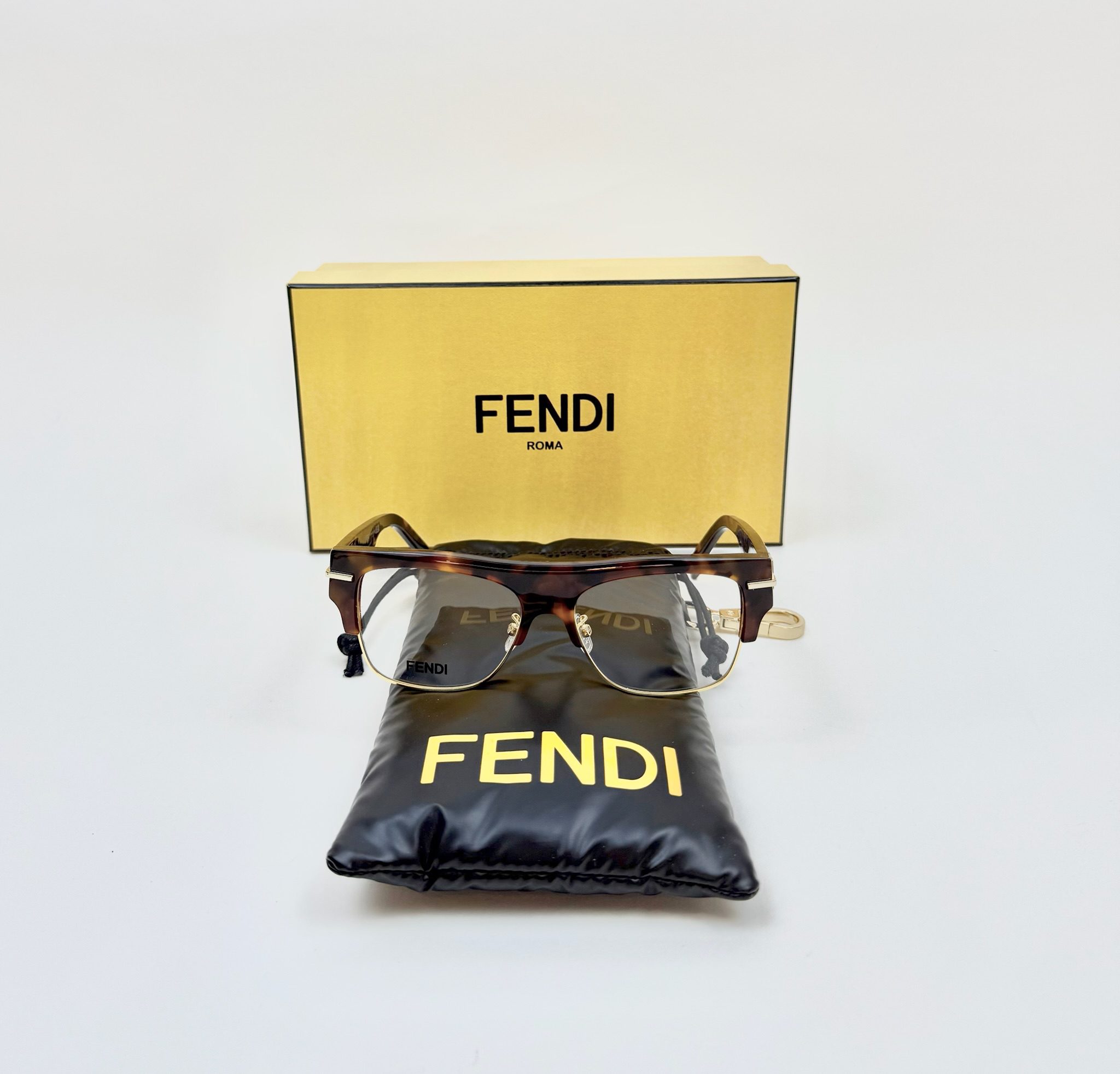 Fendi FE50095U 055 Unisex Havana Square Eyeglasses Frames Unisex