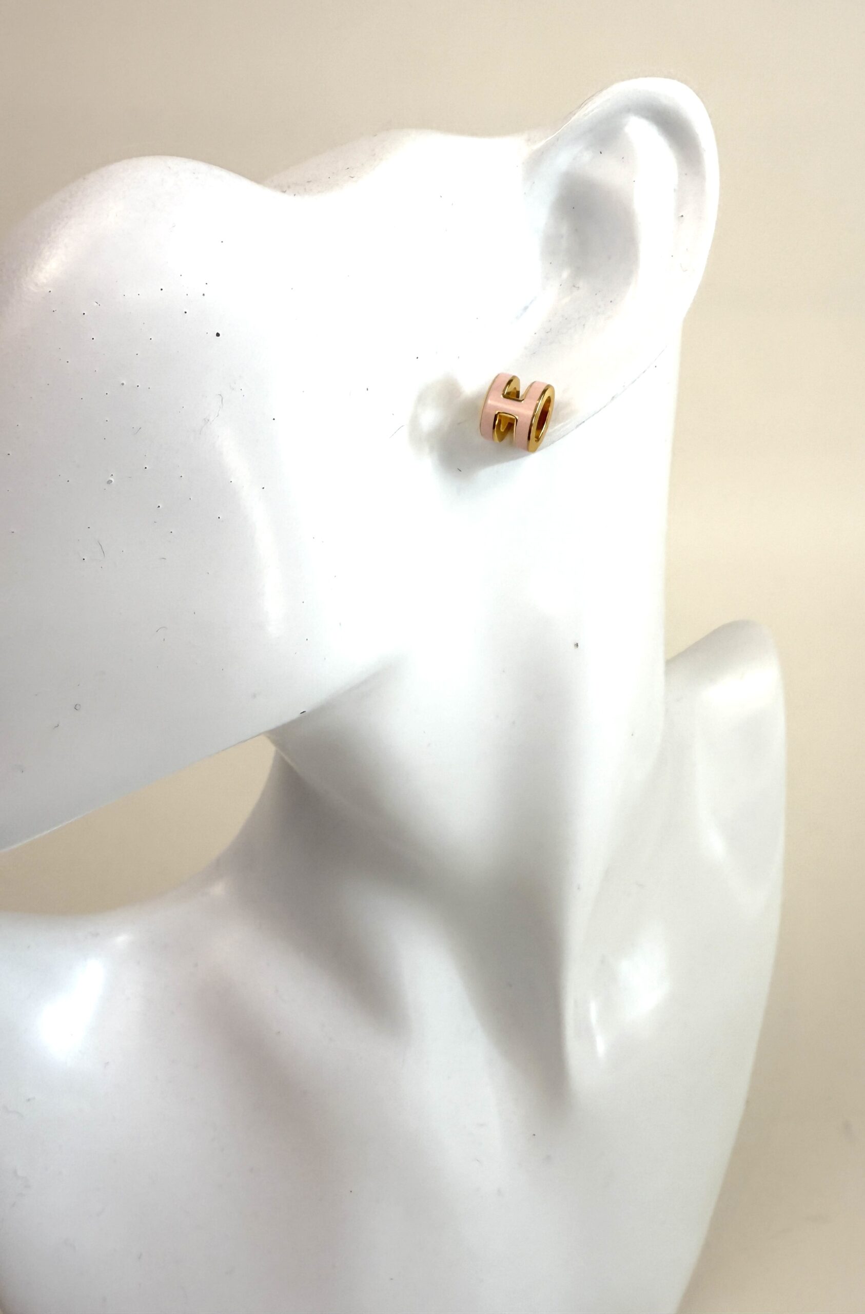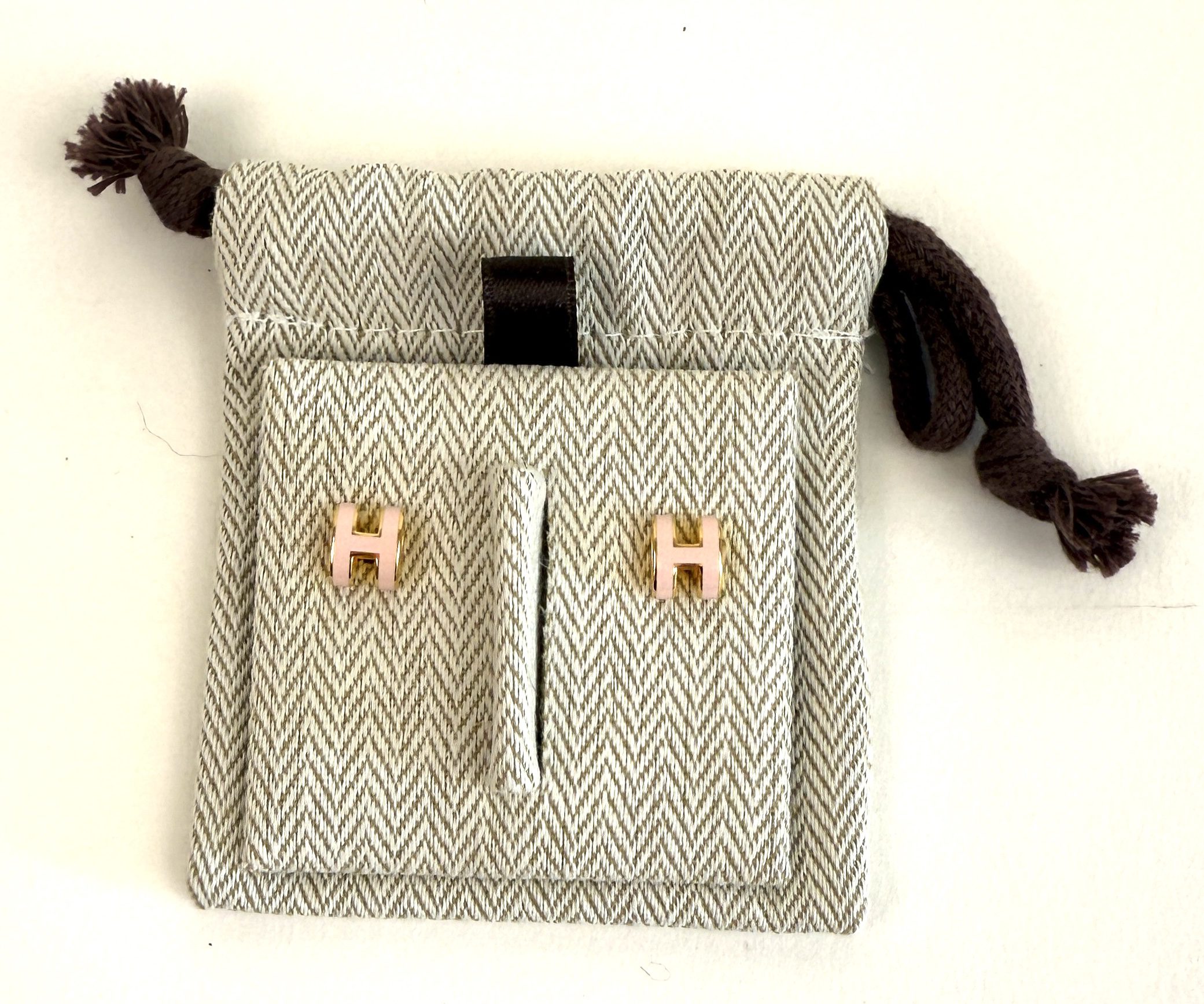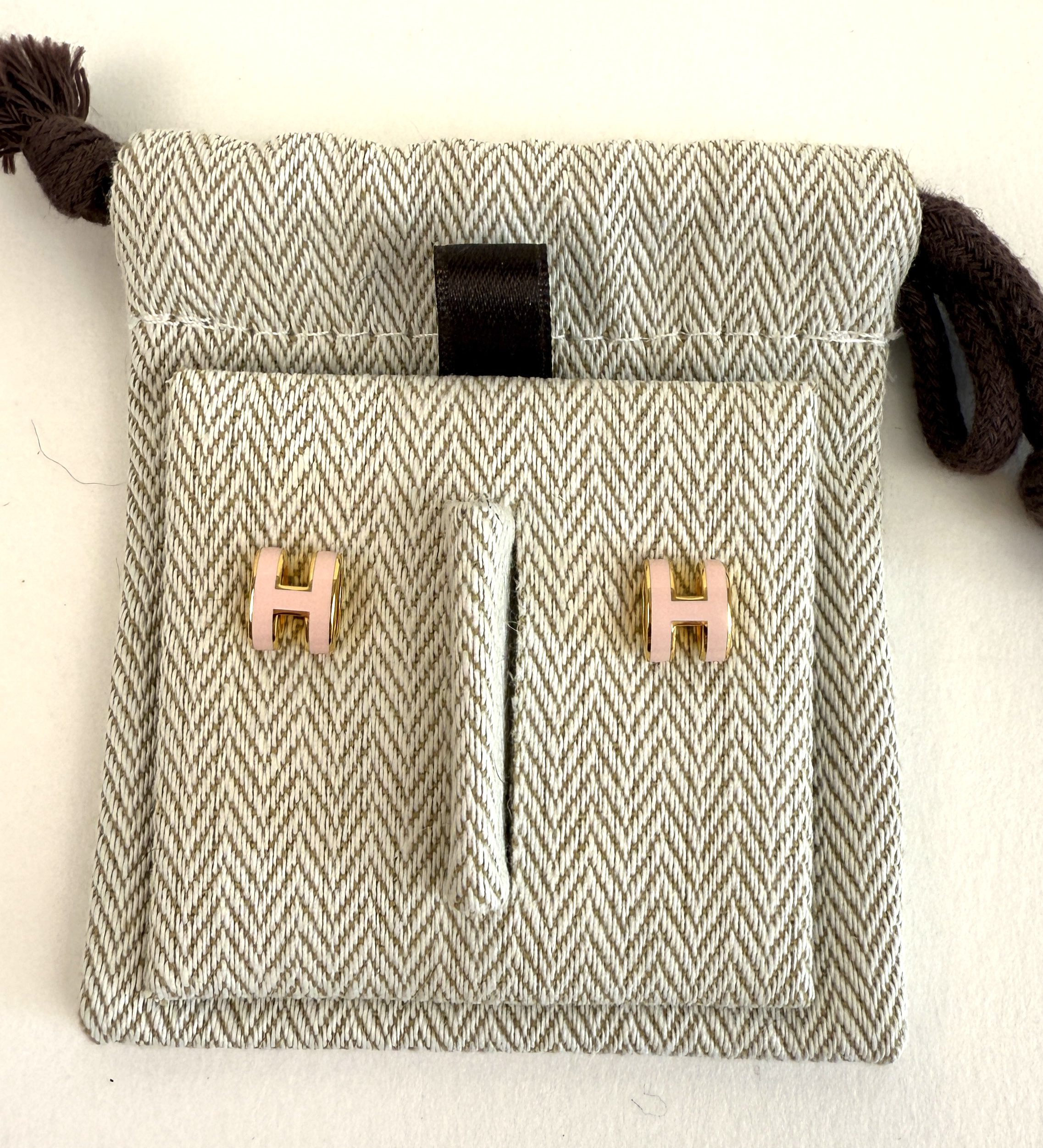 Hermes Mini Pop H Earrings Light Pink and Yellow Gold