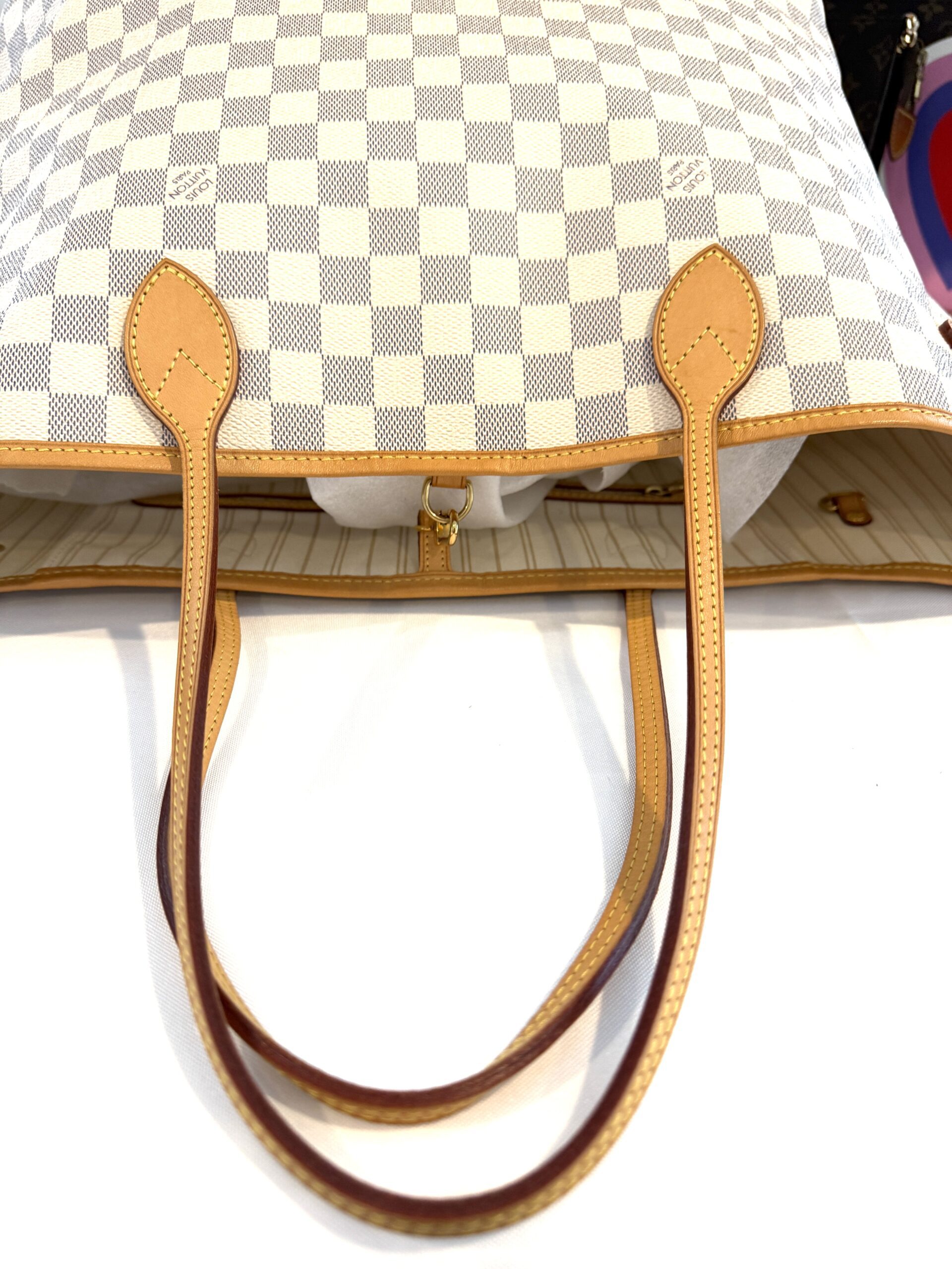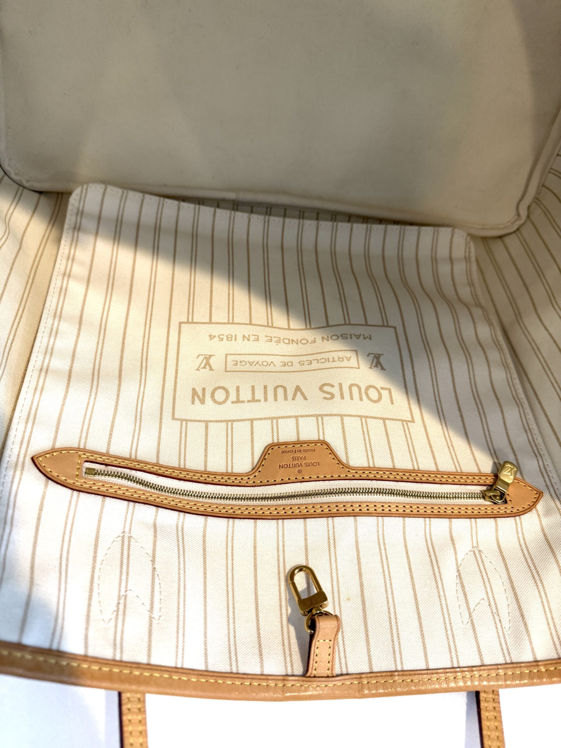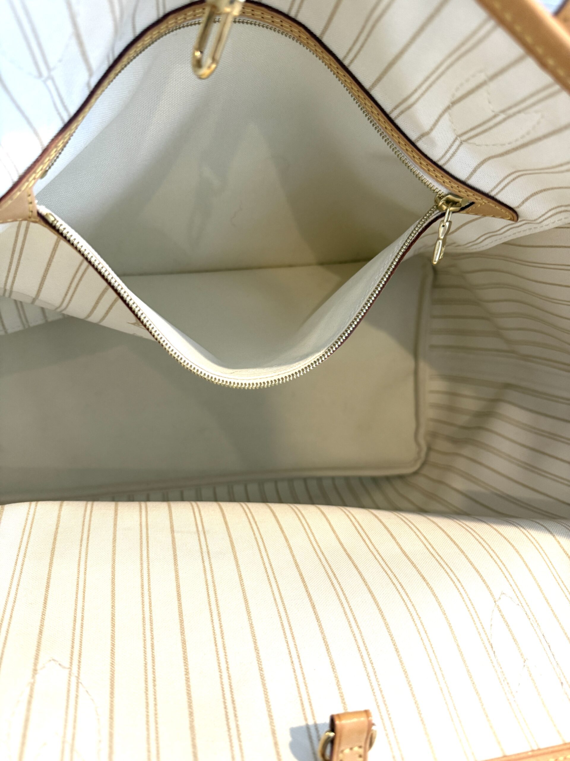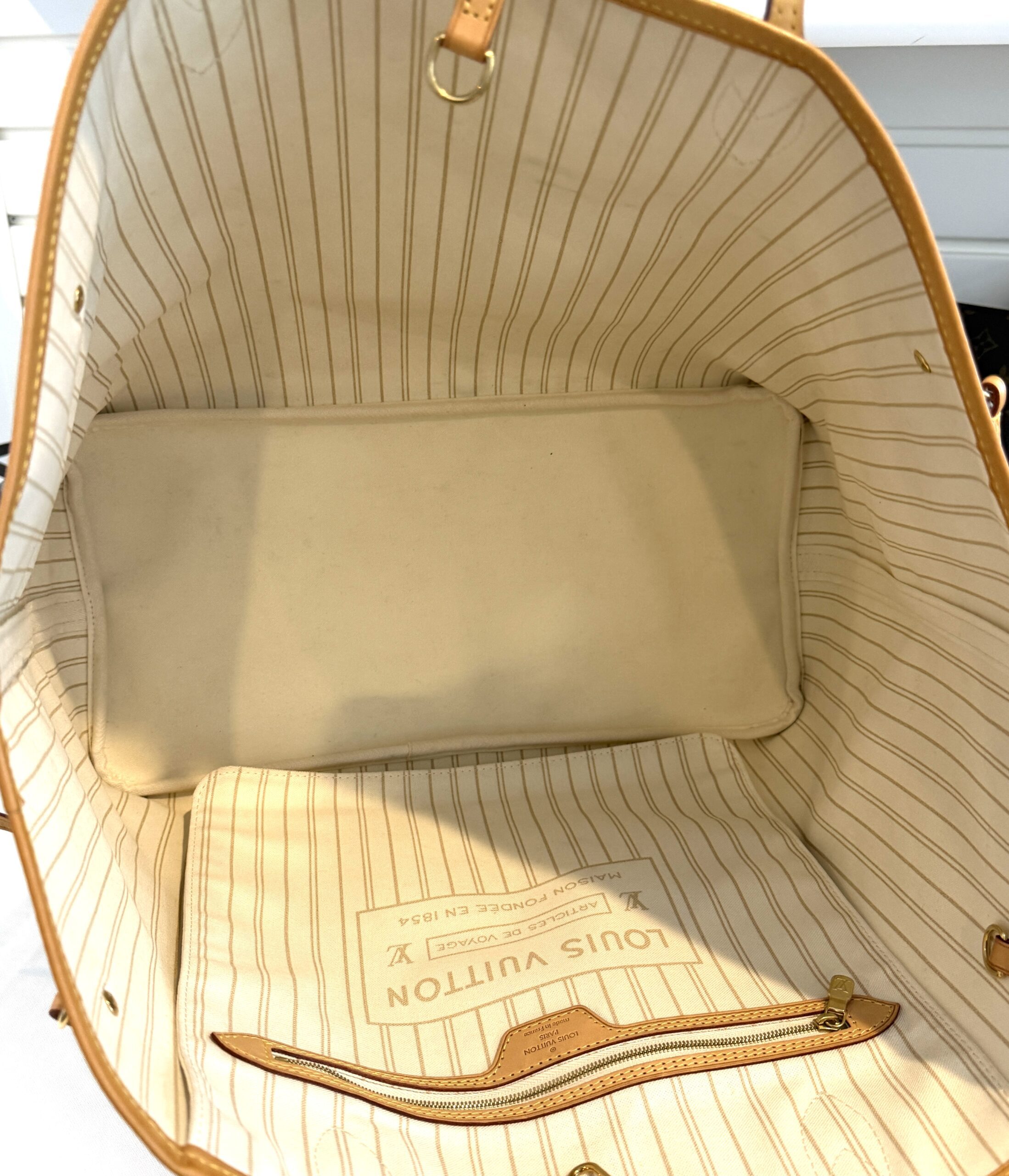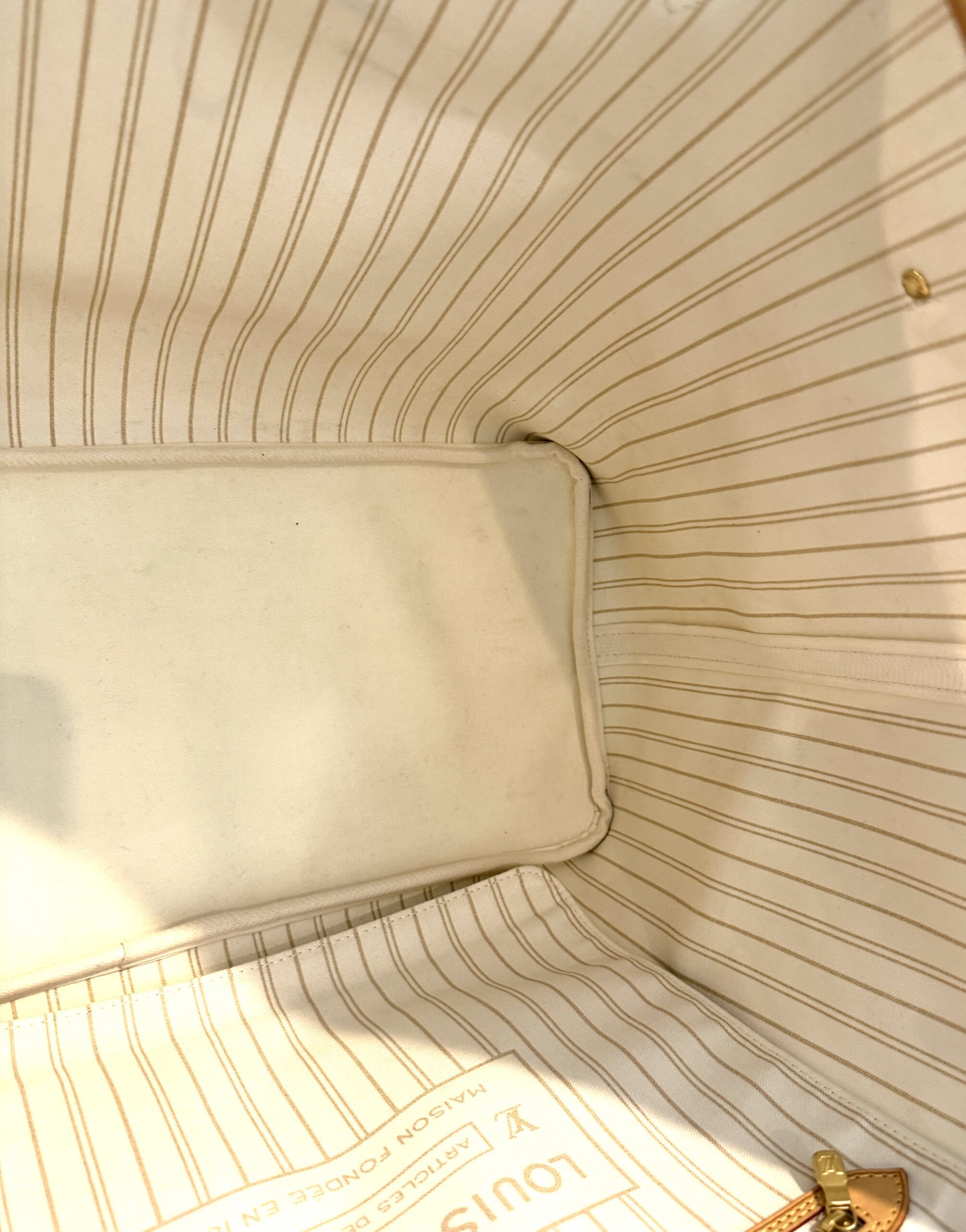 Condition: excellent, clean inside and out, please note there are a few marks inside not too noticeable, we will try to clean them off, the vachetta is a light honey, no yellowing at all, the canvas is nice and bright, all corners and hardware look great. no rips, no cracks, no foul odors.