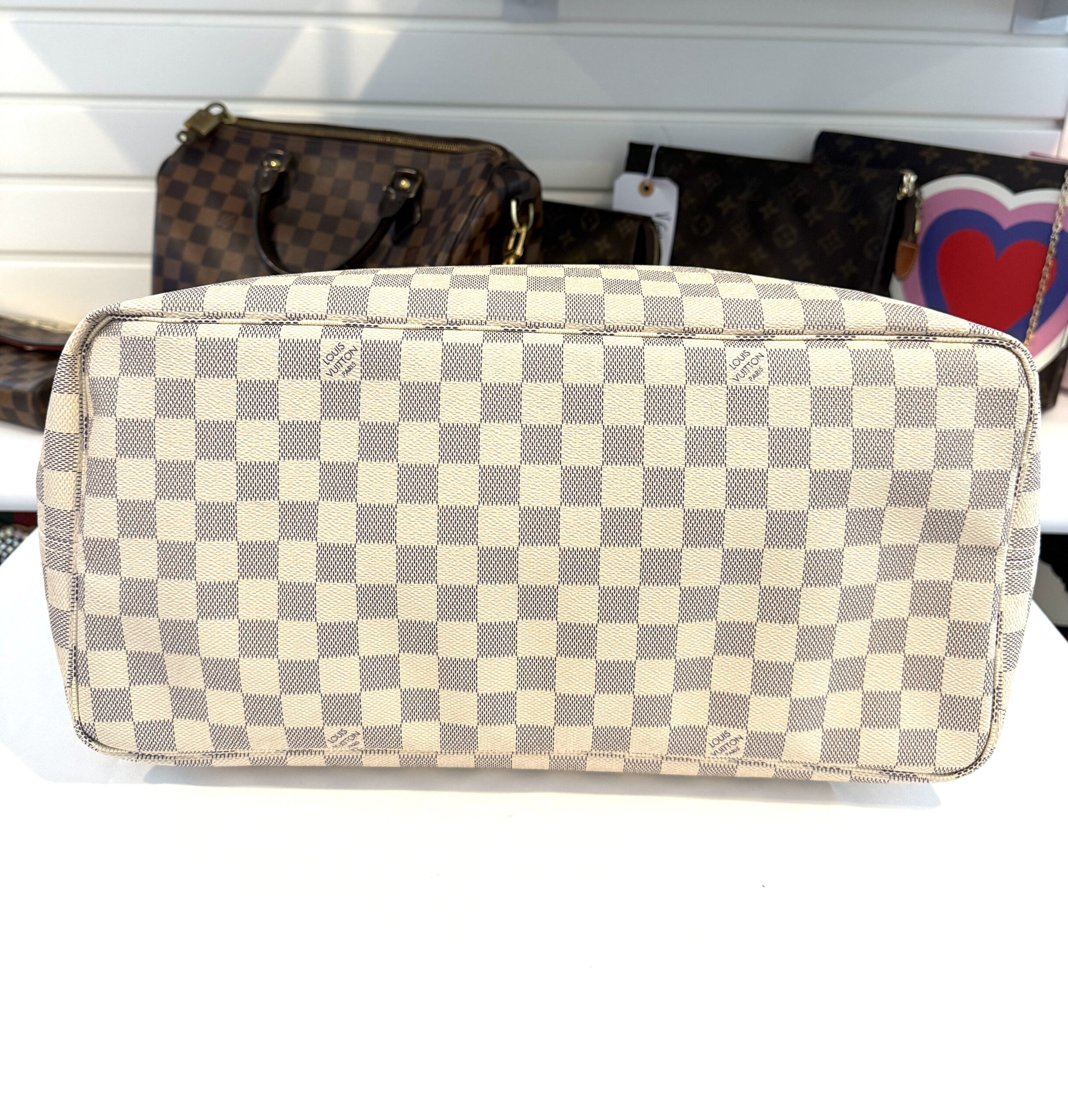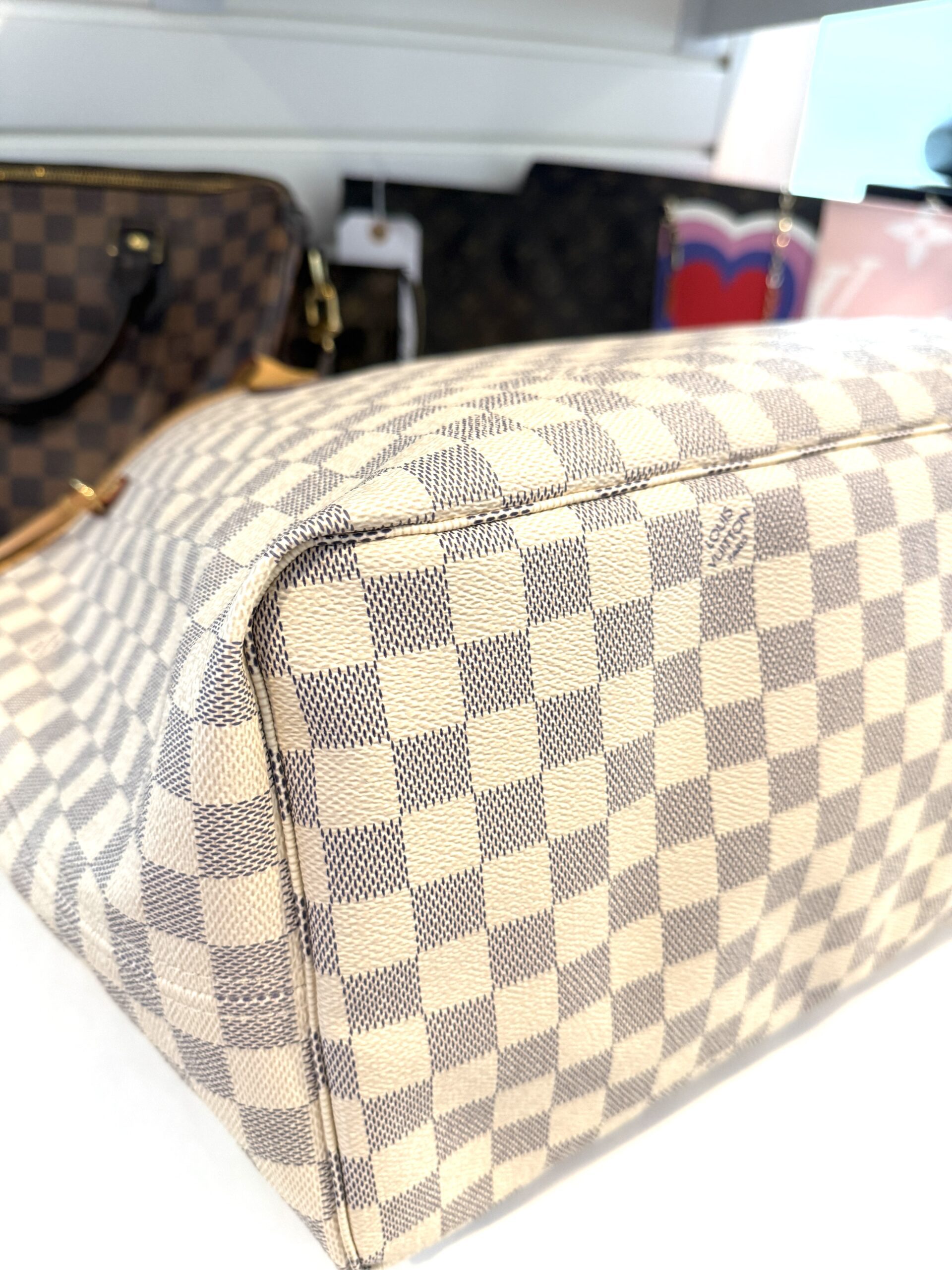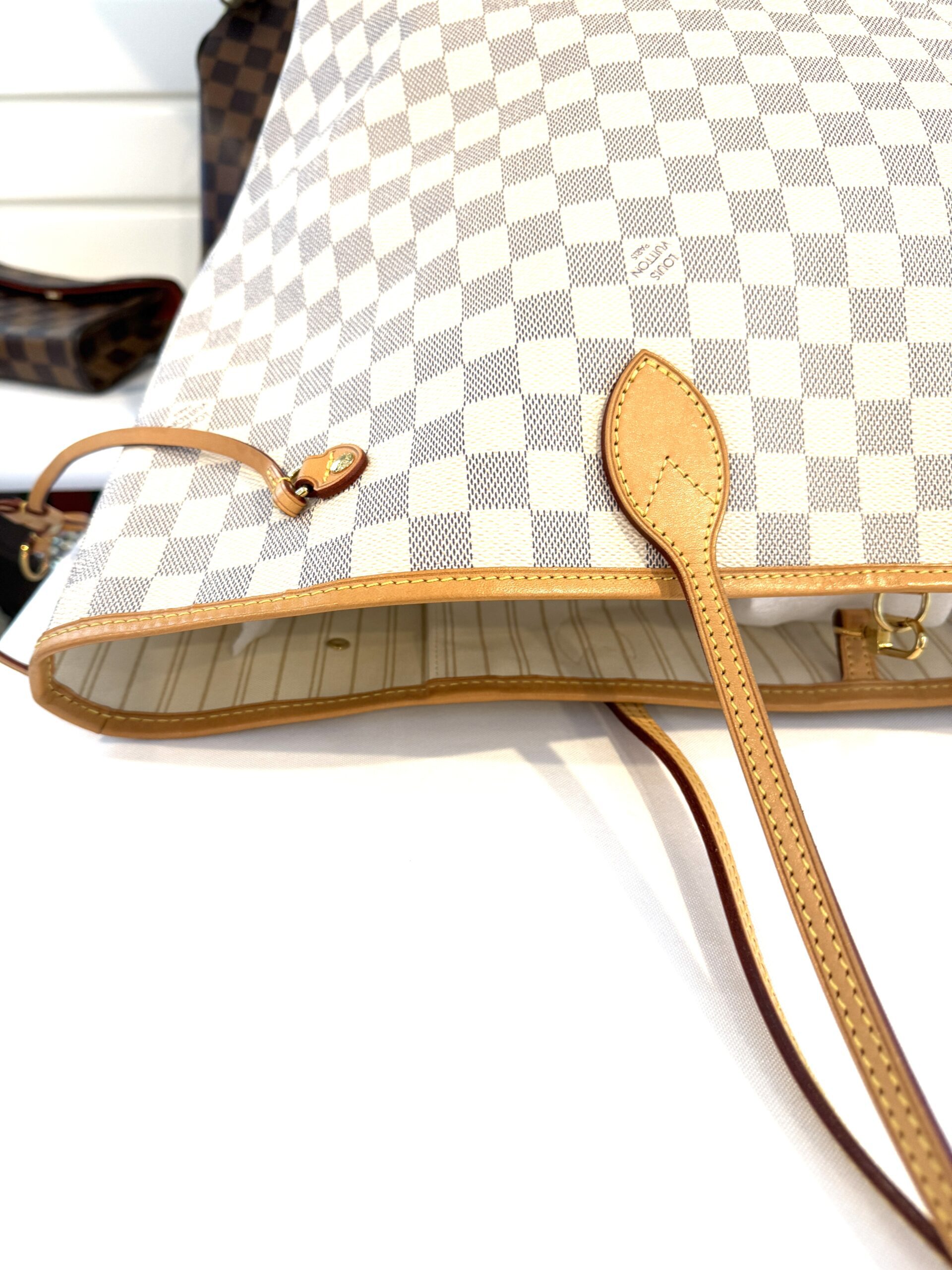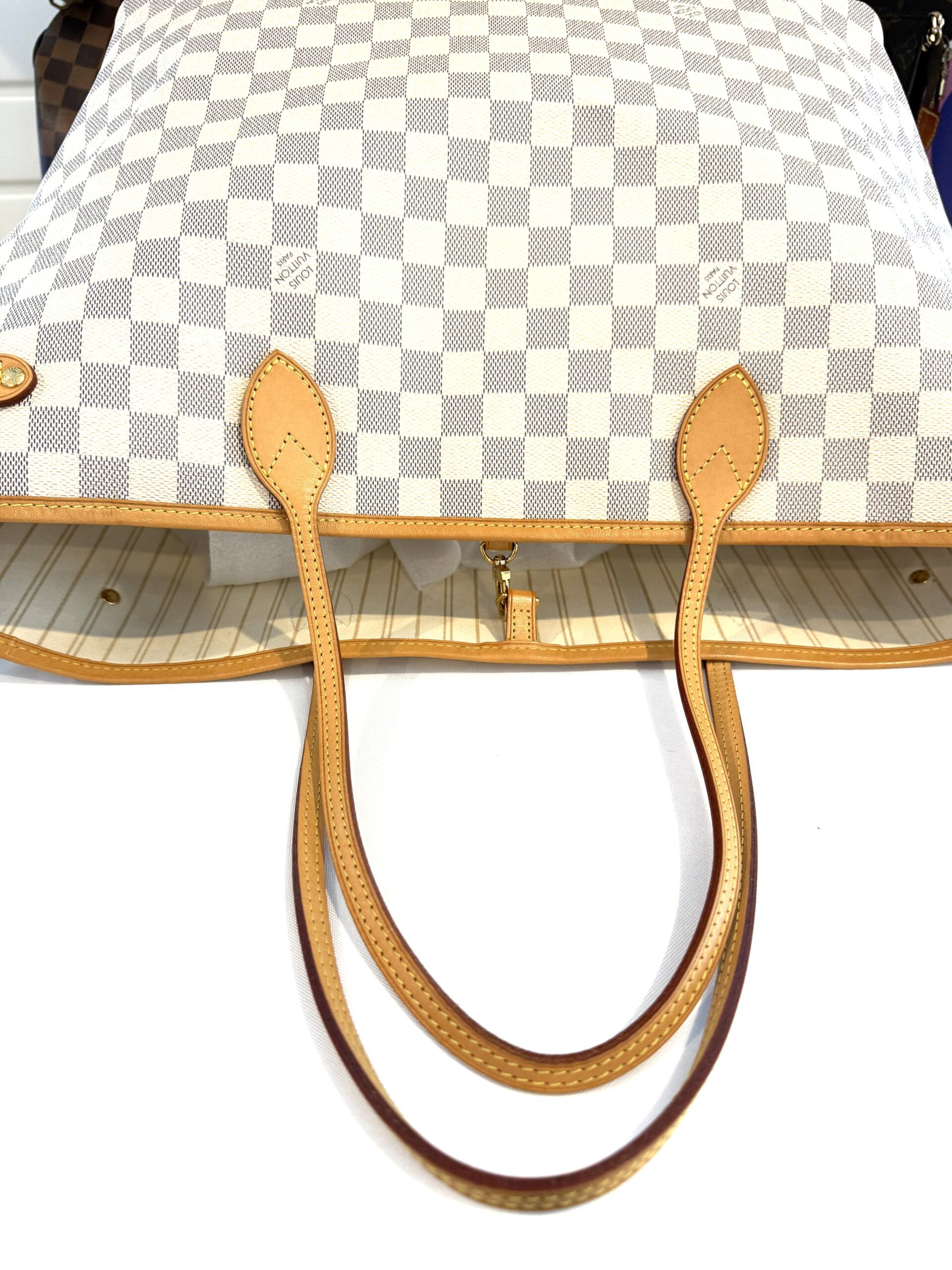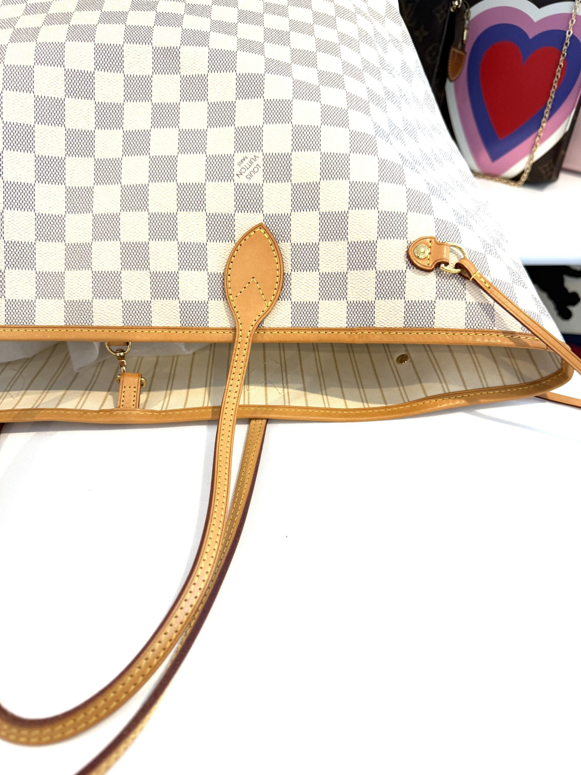 Condition: excellent, clean inside and out, please note there are a few marks inside not too noticeable, we will try to clean them off, the vachetta is a light honey, no yellowing at all, the canvas is nice and bright, all corners and hardware look great. no rips, no cracks, no foul odors.